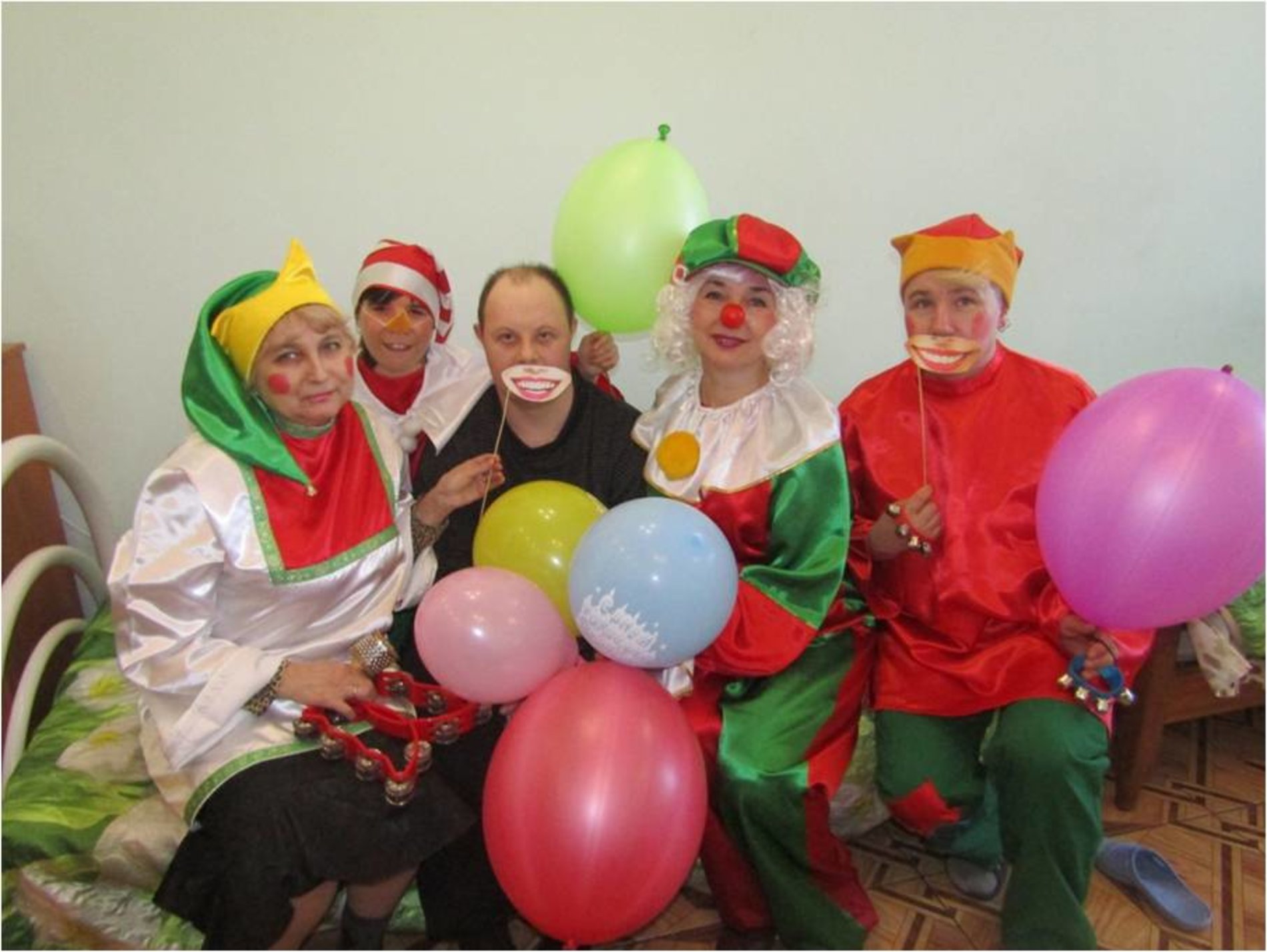 Артисты в ярких костюмах, с воздушными шарами, задорной музыкой, шутками и смехом побывали в каждой комнате с веселой программой.